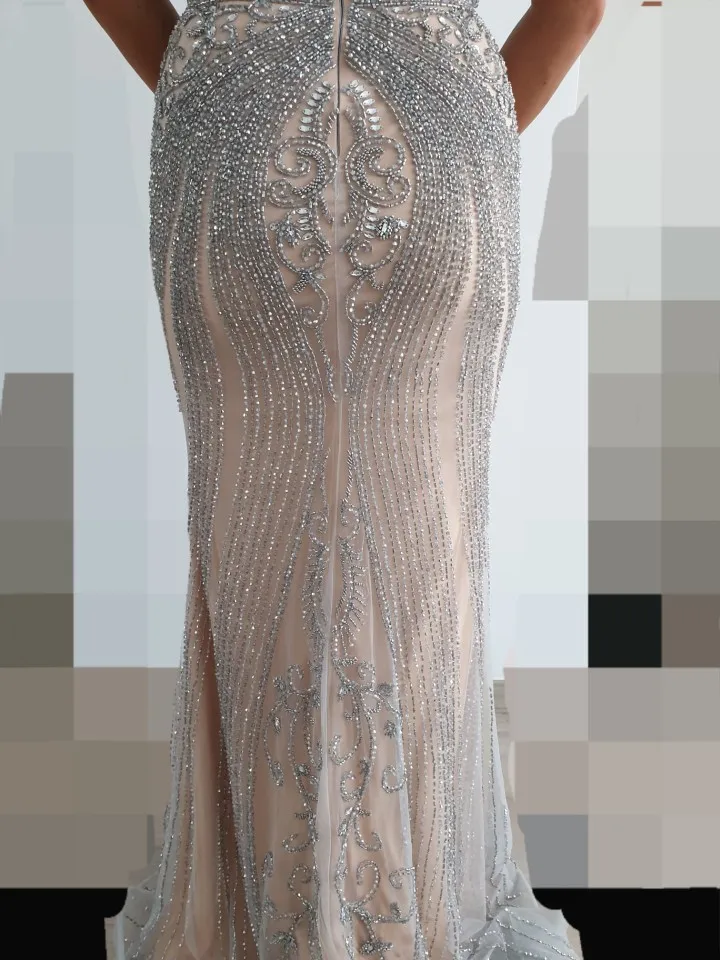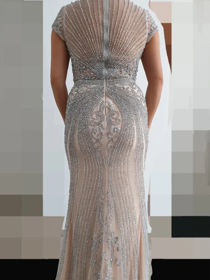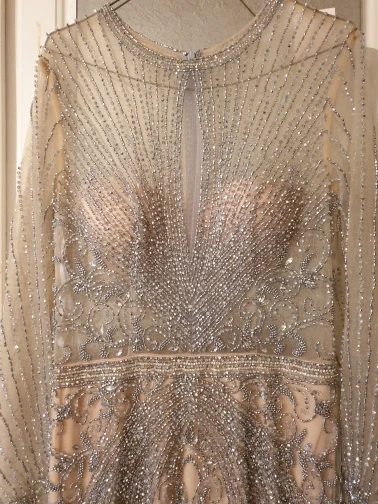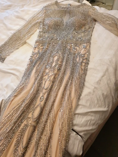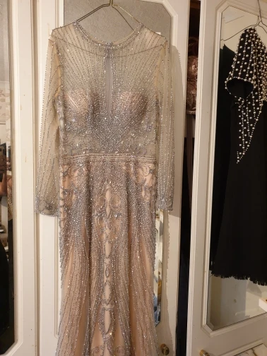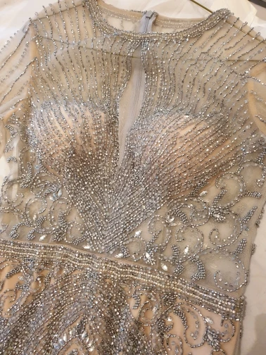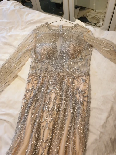 Beautiful dress as in the photo very heavy by hand but fortunately we do not recent when worn but it is very delicate to touch with delicacy