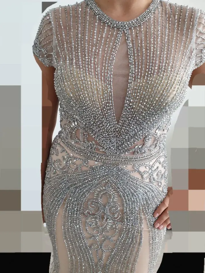 Luxury Rhinestones Nude Mermaid Long Evening Pageant Dress